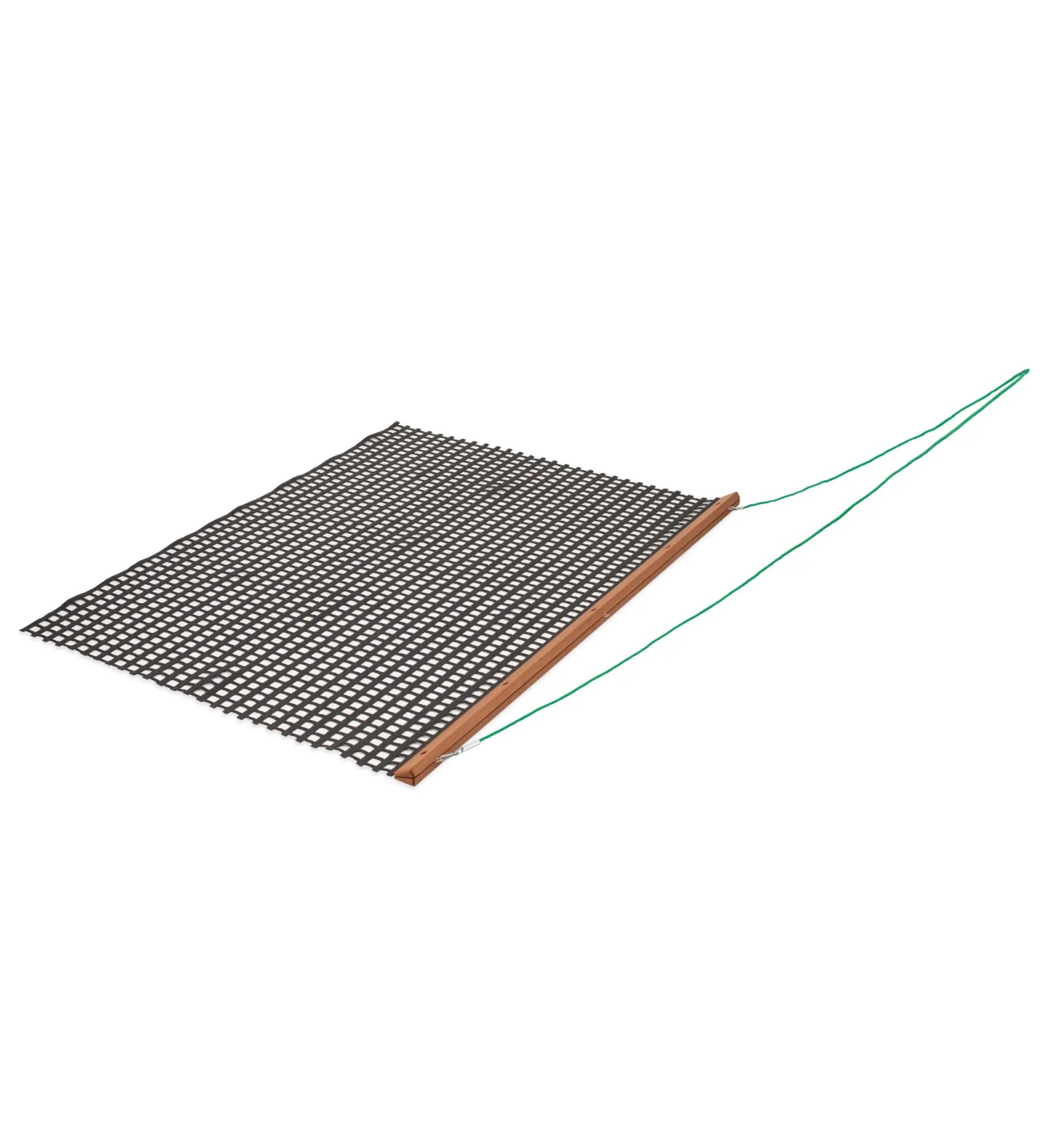 Fabricată din lemn de pin roșu, rezistent la intemperii, cu margini rotunjite și cordon de tracțiune, permite nivelarea și netezirea fără efort a terenurilor de zgură după joc. Plasa de înaltă calitate acoperită cu PVC oferă o lățime de lucru efectivă de 200 cm. Combinația dintre plasa de tip grilă acoperită cu PVC și lemnul triunghiular de pin roșu asigură o nivelare perfectă și o distribuție uniformă a materialului de suprafață.