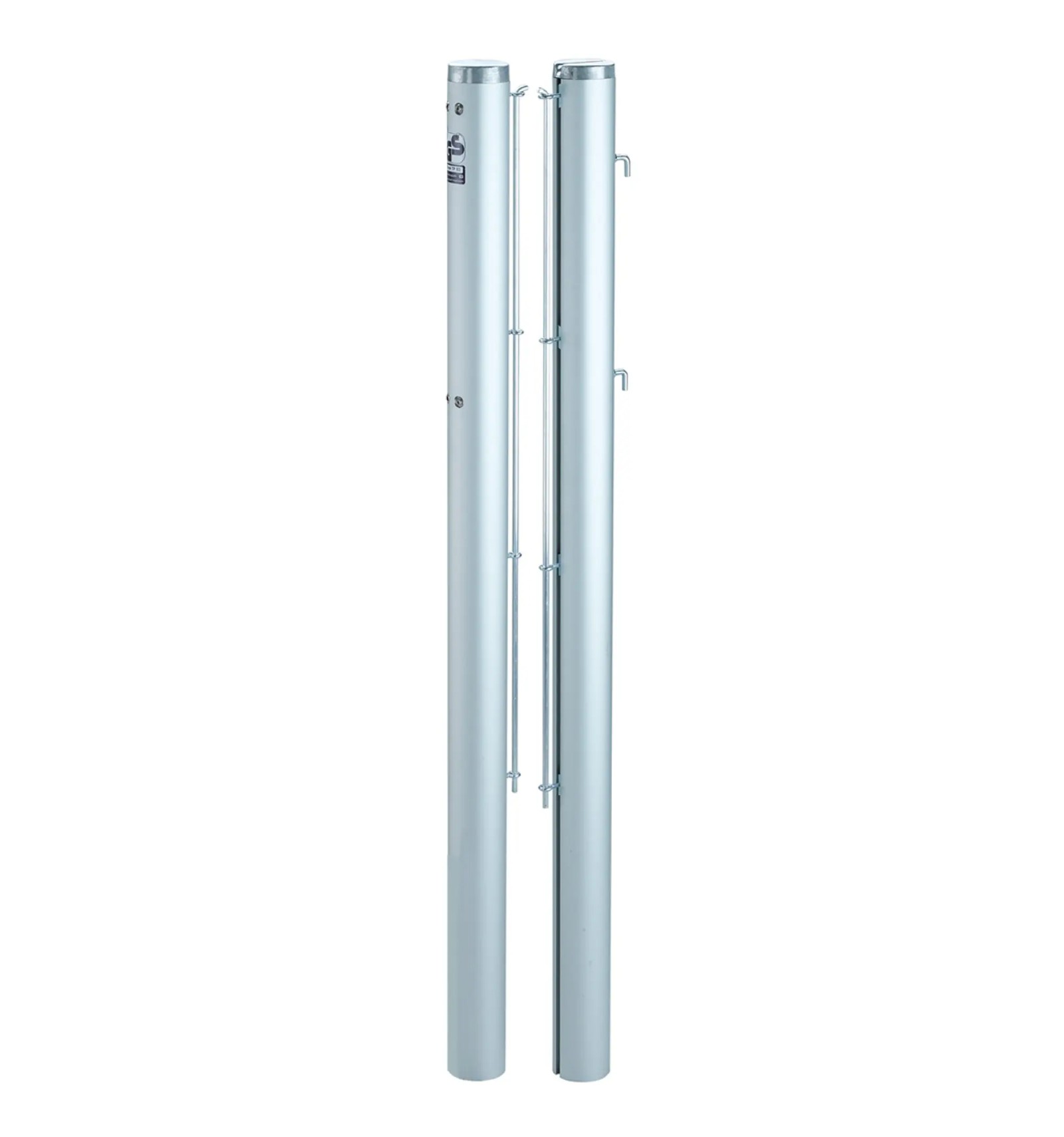 Stâlpul de tenis rotund Tennis Revolution, disponibil în finisaj anodizat argintiu mat și acoperit cu pulbere în alb sau verde, este o opțiune premium durabilă pentru terenul de tenis. Diametrul său exterior este de aproximativ 83 mm și este realizat în întregime dintr-un profil special de aluminiu.